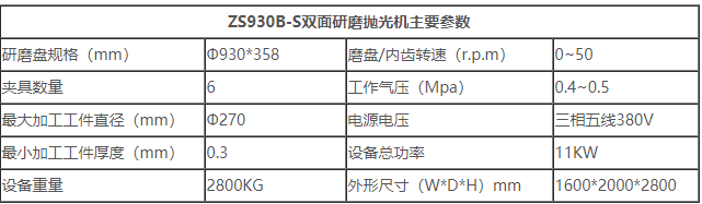 ZS930B-S双面研磨抛光机的基本参数图...