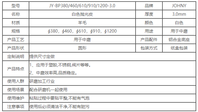 白色抛光皮的详情参数